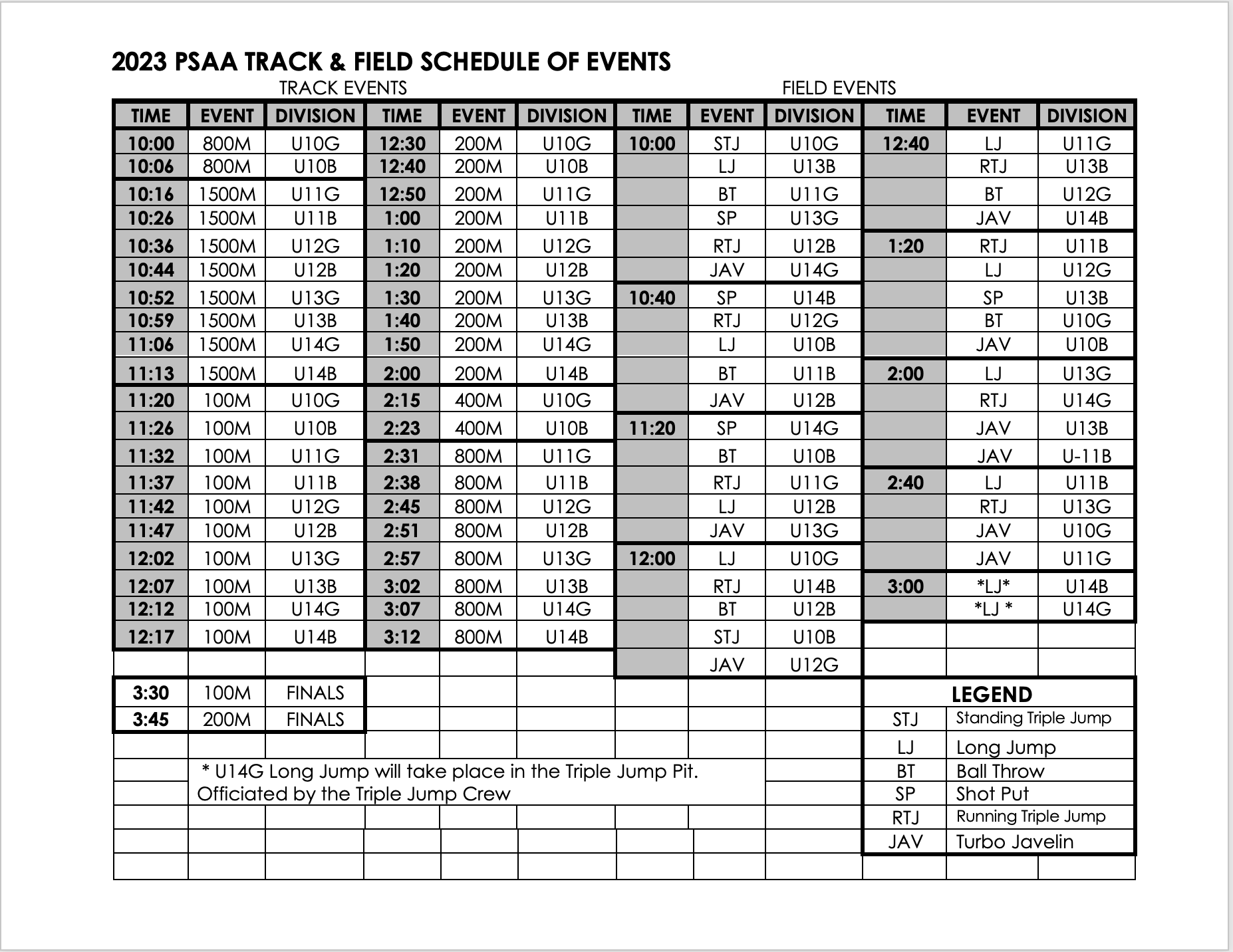 Please see the schedules below for each of our PSAA championship tournaments.